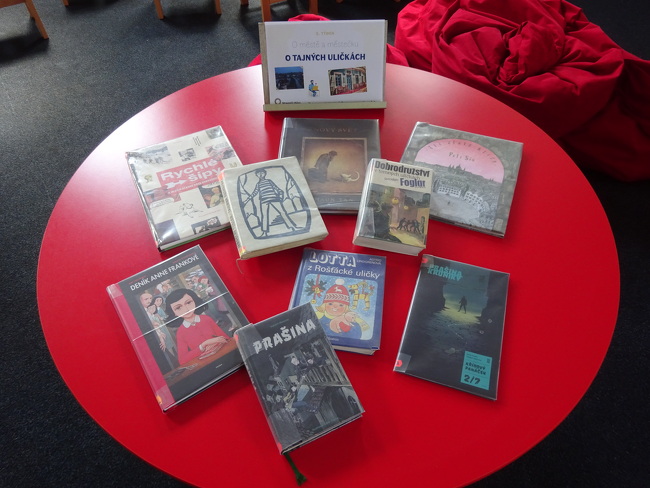Nedávno se nám rozrostl fond mimo jiné o knížku pokračovatele foglarovské tradice, Petra Hugo Šlika a komiksové zpracování Deníku Anne Frankové. Zasutých míst v tajných a tmavých uličkách tedy můžeme nabídnout dost pro každého malého i většího čtenáře.