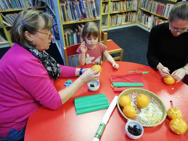 Aby dětem čas čekání na Ježíška utíkal rychleji, vyrobili jsme si vlastnoručně zdobený adventní kalendář a pomeranč proměnili dláty a hřebíčkem v originální ozdobu. Knihovna nám tak vánocemi doslova i zavoněla.