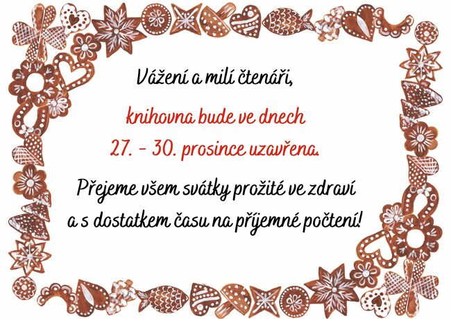 knihovna bude ve dnech 27. - 30. prosince uzavřena.