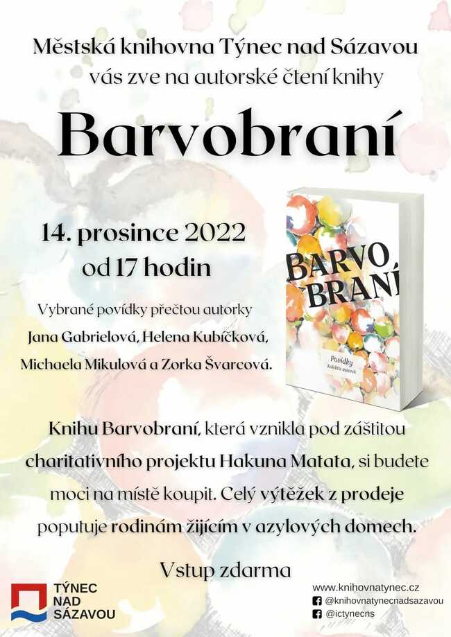 zveme Vás k posezení při autorském čtení nové knihy českých autorek nazvané Barvobraní.