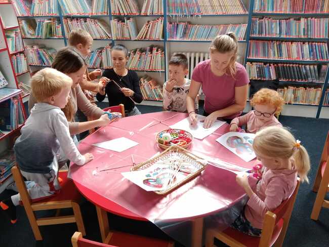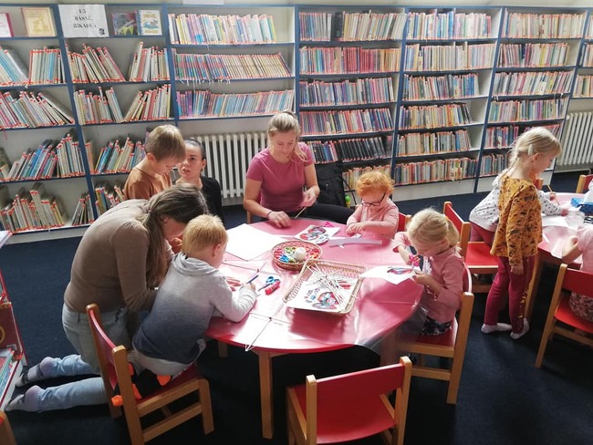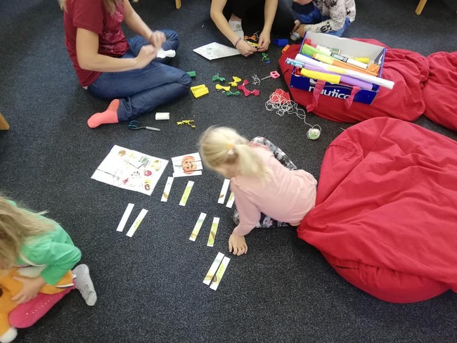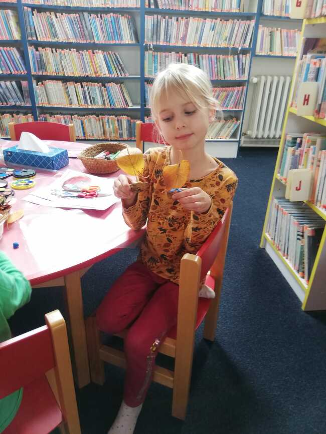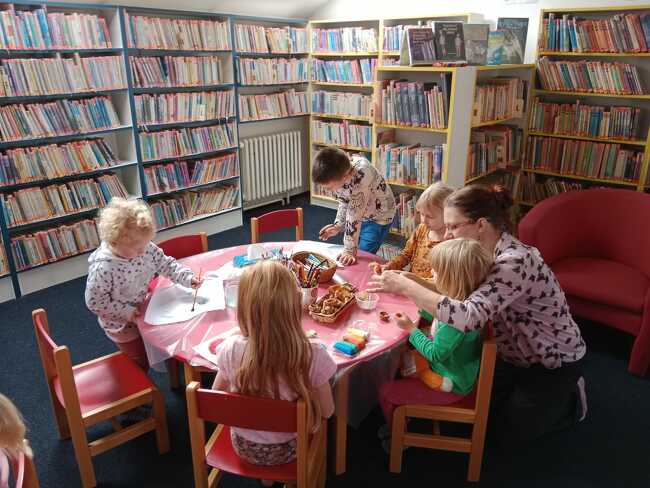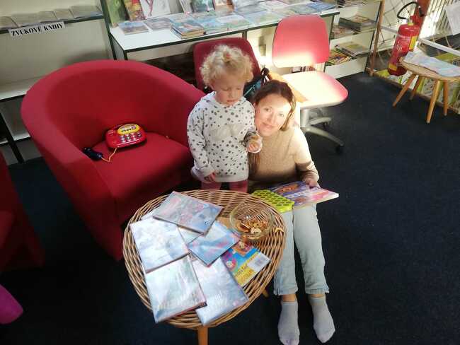 V knihovně se četlo, malovalo, tvořilo. Děti si mohly ochutnat bábovku upečenou dle receptu můry Bětky, křížaly z podzimních jablíček. Domů si odnesly draka, lodičku ze skořápky vlašského oříšku či Bětčin domeček.