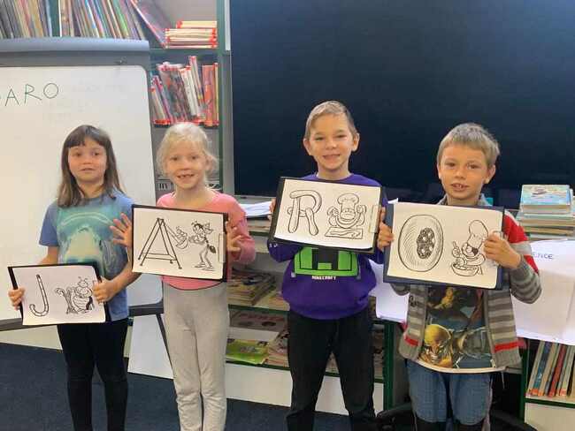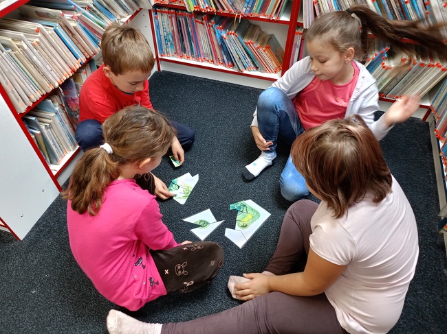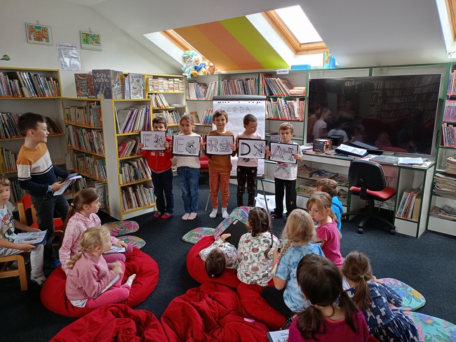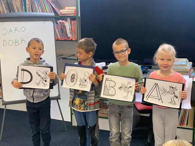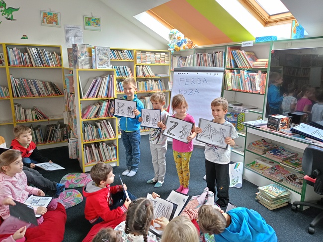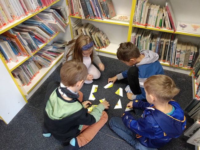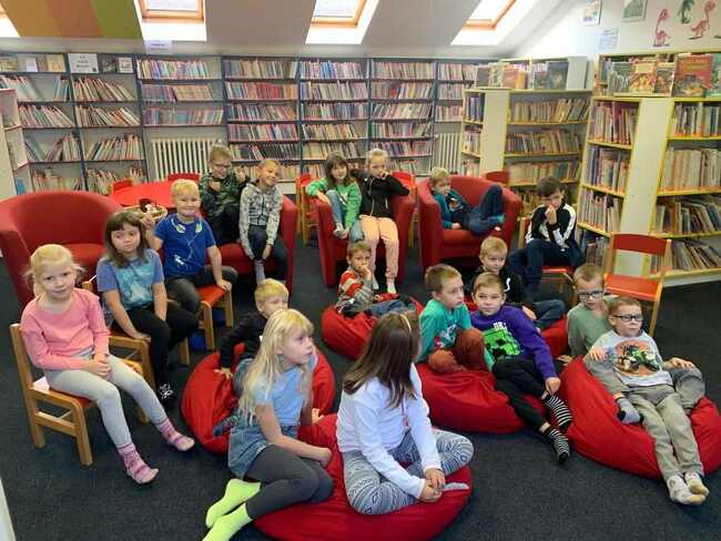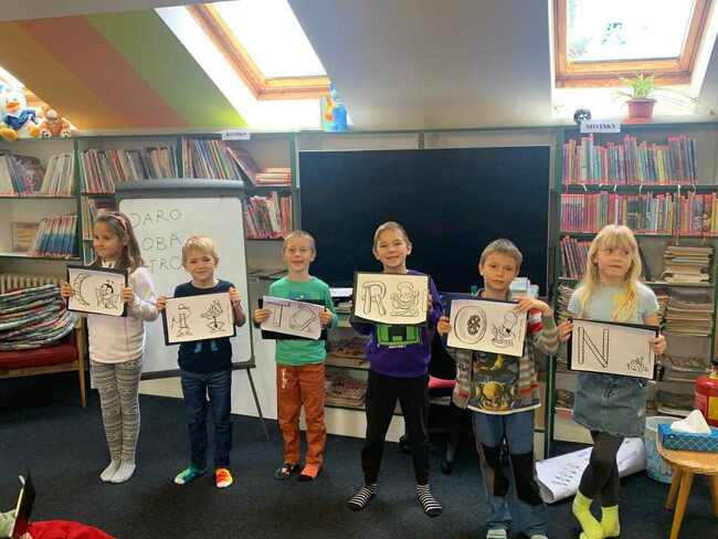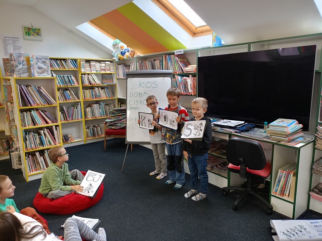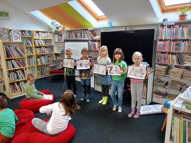 Přivítali jsme již přes deset tříd z prvního stupně a žáci se dle výběru paní učitelek věnovali různým tématům spjatým s literaturou. Povídání i aktivit je vždy celá řada, a tak se nám často podaří z lekce jen pár momentek.
