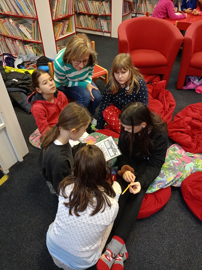Mladší děti pilně luští vánoční hádanky a pomáhají skládat betlémek a pro starší jsou připraveny nedokončené příběhy s vánoční tématikou. Jejich dotažení mají na starosti skupinky čtvrťáků a páťáků a vznikají nám tu opravdu milé, ale někdy i přímo hororové zápletky.