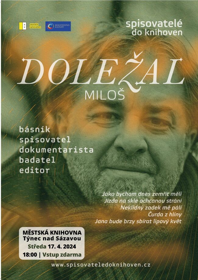 Středeční večer 14. dubna od 18:00 v týnecké knihovně bude věnován setkání s básníkem, spisovatelem a dokumentaristou Milošem Doležalem.