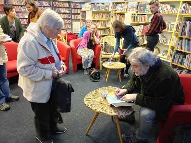 Posezení bylo odlehčeno příhodami z autorova mládí, které nám předčítal ze své knihy, kde s nadhledem vzpomíná na každodennost českého maloměsta 70. a 80. let 20. století.