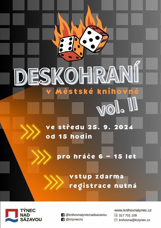 Ve středu 25. září budeme v knihovně od 15 hodin opět hrát ! DESKOVKY !