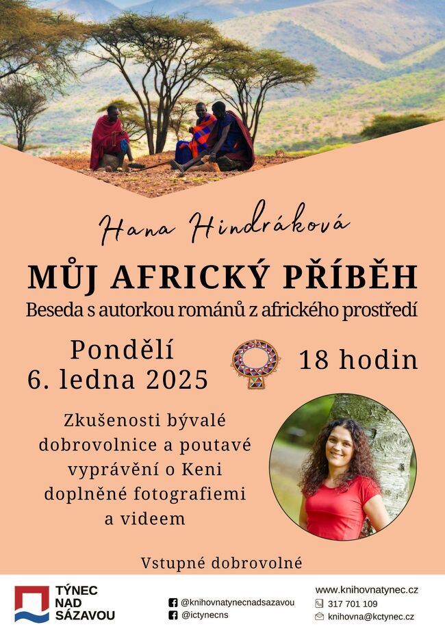 V chladném lednu navštívíme prostřednictvím oblíbené spisovatelky Hany Hindrákové africký kontinent a dozvíme se zajímavosti z keňské kultury i její zkušenosti v roli dobrovolnice.