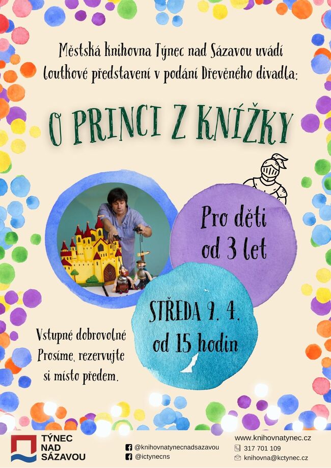 Již příští středu potěšíme nejmenší návštěvníky loutkovým představením O princi z knížky v podání souboru Dřevěného divadla.