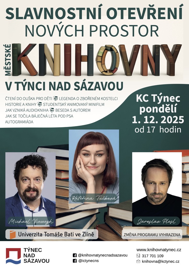 Naše knihovna se přestěhuje do nových prostor a máme jedinečnou možnost společně s vámi otevřít další významnou kapitolu jejího příběhu. Přijďte s námi oslavit zahájení nové éry knihovny, užít si inspirativní program a setkat se s významnými osobnostmi české literatury a kultury.