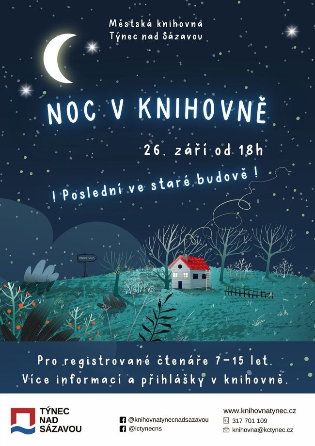 Opět potěšíme zájemce o přespávání v knihovně. Registrovaní čtenáři ve věku od 7 do 15 let mají po předchozí rezervaci možnost strávit dobrodružný večer a noc v Městské knihovně, kde je čekají společné hry, čtení a napínavé dobrodružství.