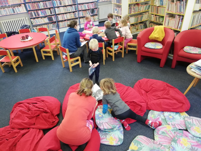 Tuto milou návštěvu jsme pozvali do dětského oddělení, kde je možné se během povídaní pohodlně uvelebit v obklopení knih. Děti nás potěšily svou bezprostředností a chutí si o svých zkušenostech s knihami povídat i zájmem o všudypřítomné knížky, ze kterých si rychle vybraly své oblíbence.