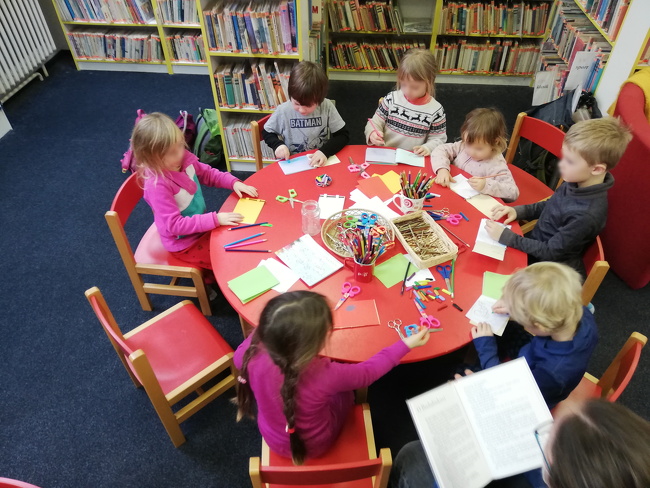 Během besedy jsme dětem formou povídání a rozhovoru představili funkce knihovny, seznámili je se základními druhy literárních žánrů a při vyrábění vlastní knížečky si děti mohly poslechnout pohádku O Budulínkovi.
