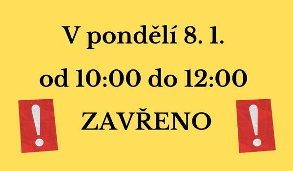 V pondělí 8. 1. bude otevřeno 8:00 - 10:00 a 13:00 - 15:30